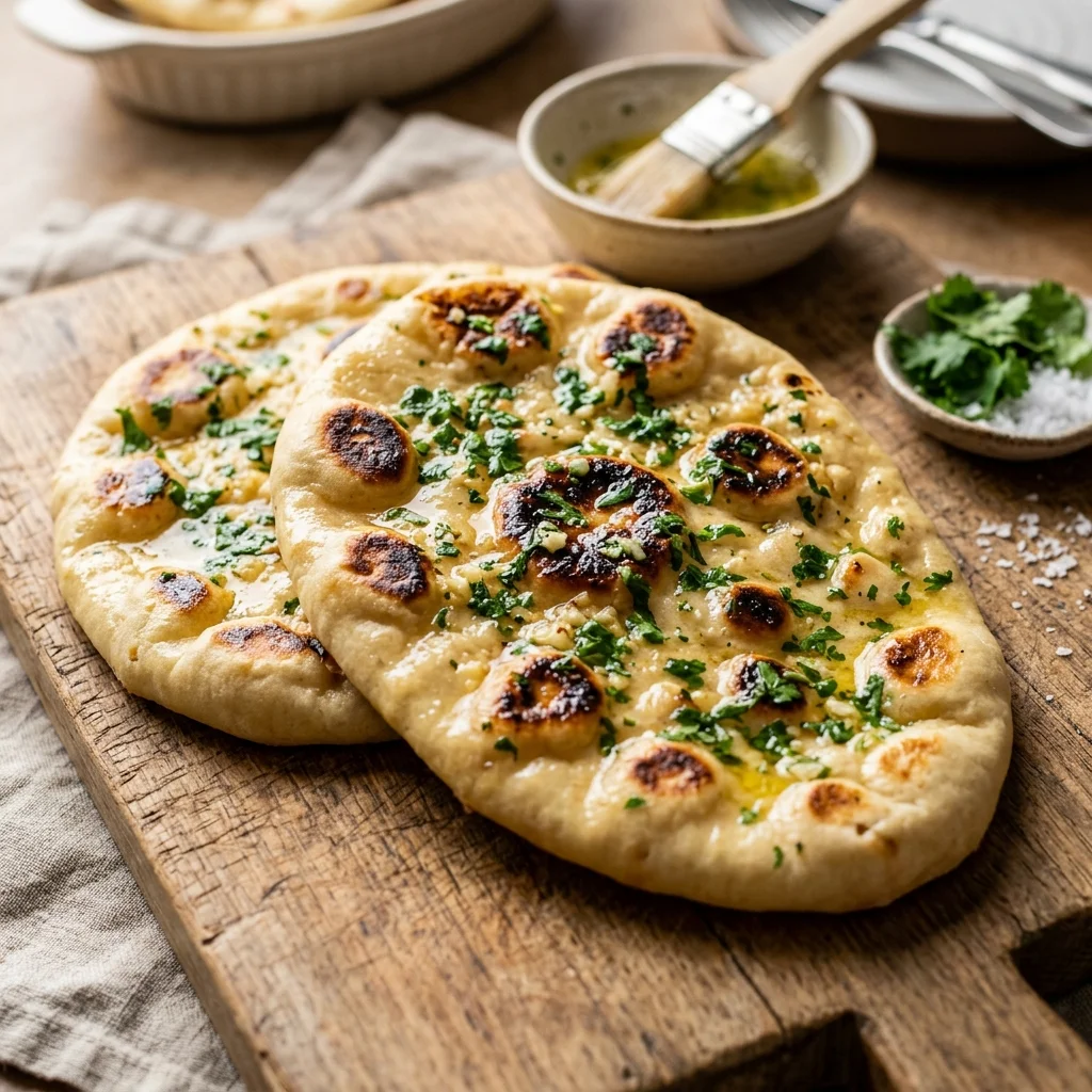 Frisch gebackenes Naan-Brot ist der Star jeder indischen Mahlzeit. Meist wird es in einem glühend